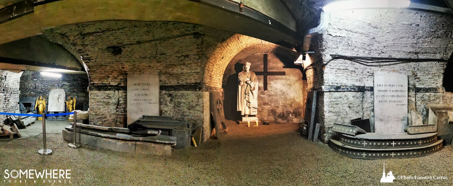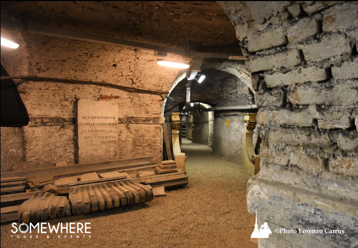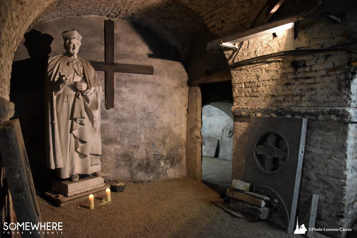 Ti attende un'apertura straordinaria ed esclusiva: gli antichi sotterranei della Chiesa della Consolata, normalmente inaccessibili al pubblico. Qui il tempo si è fermato. Antiche lapidi emergono dalla penombra, custodendo per secoli le storie di coloro che vi riposano. Incisioni, simboli misteriosi, identità dimenticate: ogni pietra è una voce che aspettava solo di essere ascoltata. Un luogo che emana una quiete solenne, dove la storia si tocca con mano — o quasi.